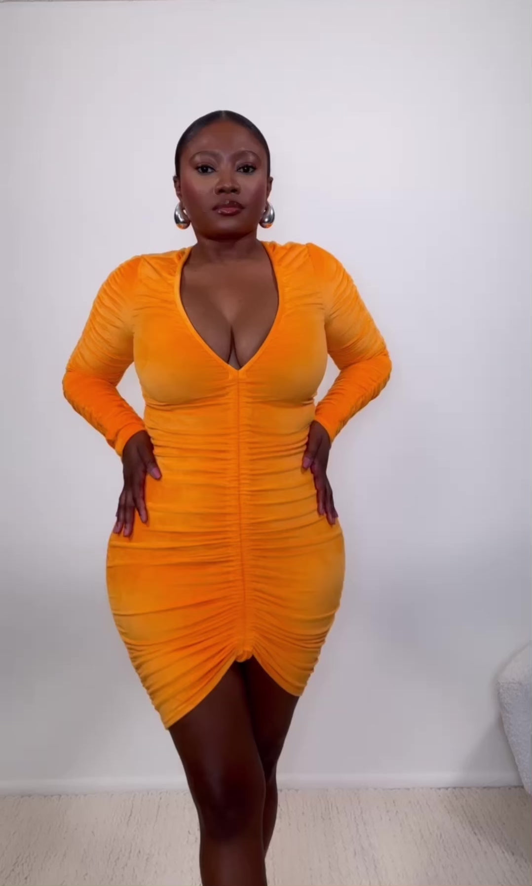 Velour ruched dress, Deep V Neck, Fasten with ruched detail at front. Great stretch.